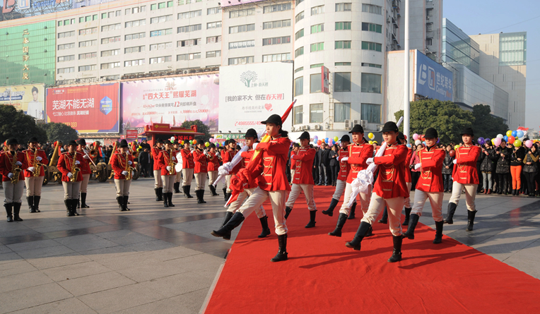 上午9時,步行街華億廣場A座門前鮮花盛放,12門禮炮一字排開,1000余只彩球在空中歡動,華億軍樂隊、升旗隊準備就緒,市民翹首圍觀,共同見證華億國際十二周年輝煌。9時28分,主持人宣布慶典活動正式開始。在莊嚴的國歌聲中,國旗和華億集團司旗緩緩升起。隨后,華億集團總裁、華億國際總經理項領發表賀辭。賀辭中說到,華億國際在全體員工的共同辛勤努力下走過了輝煌的12年,尤其在2013年中,華億國際的商場硬件建設、品牌建設、管理提升、服務提質等方面有了突破性的進步,希望華億人在新的一年里繼續攜手前行,克堅攻難,創造新的輝煌,為蕪湖商業建設做出應有的貢獻。