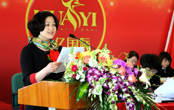 3月16日下午,“華億國際購物中心2014年度總結表彰暨2015年工作部署大會”在華億國際A座六樓多功能廳隆重召開。400余名后勤機關和一線員工的代表參加了大會。華億集團總裁、華億國際董事長項領,華億集團黨委書記、副總裁陳愛國,華億國際總經理張樹華,華億國際副總經理章國琴,孫艷,楊艷菁,王萍,陳朝暉,柯琳,張玲,錢冬林出席大會并在主席臺就坐。大會由華億國際副總經理孫艷主持。