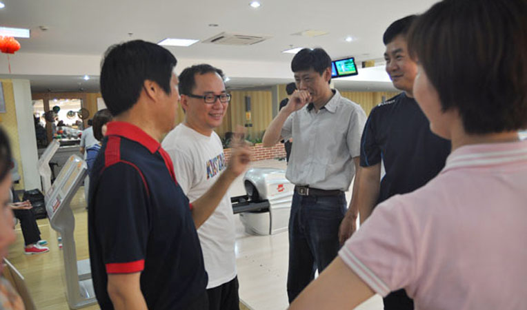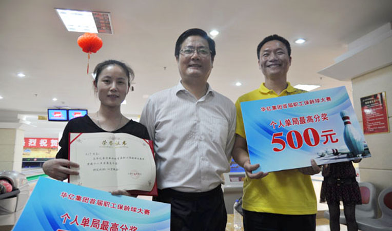 在簡短的開幕式之后,比賽迅速展開并高潮迭起。各參賽選手充分發(fā)揮水平,不時打出全中的好球。經(jīng)過近3個小時候的激烈比賽,偉晨公司獲得團體第一名,集團機關(guān)、華億國際一隊獲得團體第二名,華億國際二隊、華億置業(yè)、華億超市獲得團體三名。偉晨公司選手朱浩宇、華億國際一隊選手張立琴分別獲得男女個人單局最高分獎。項義水董事長則打出了個人總分第一的好成績。