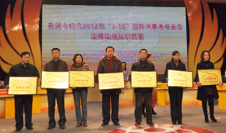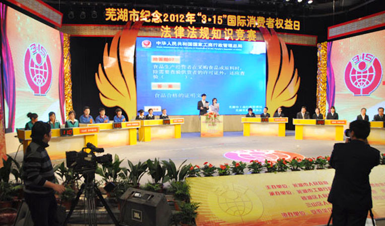 2012年3月10日下午,由蕪湖市人民政府主辦,市工商局、市消費(fèi)者協(xié)會(huì)、市廣播電視臺(tái)和各區(qū)人民政府承辦的 紀(jì)念“3.15”國(guó)際消費(fèi)者權(quán)益日法律法規(guī)知識(shí)競(jìng)賽決賽在市廣電中心舉行。通過(guò)預(yù)賽層層選拔,全市共六支代表隊(duì)進(jìn)入決賽。經(jīng)過(guò)緊張激烈的角逐,華億集團(tuán)代表隊(duì)力壓群雄,勇奪第一名。